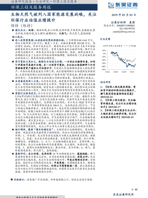 【东吴证券】【20190303】环保工程及服务周报:生物天然气被列入国家能源发展战略,关注环保行业估值业绩提升-41页 行业研究