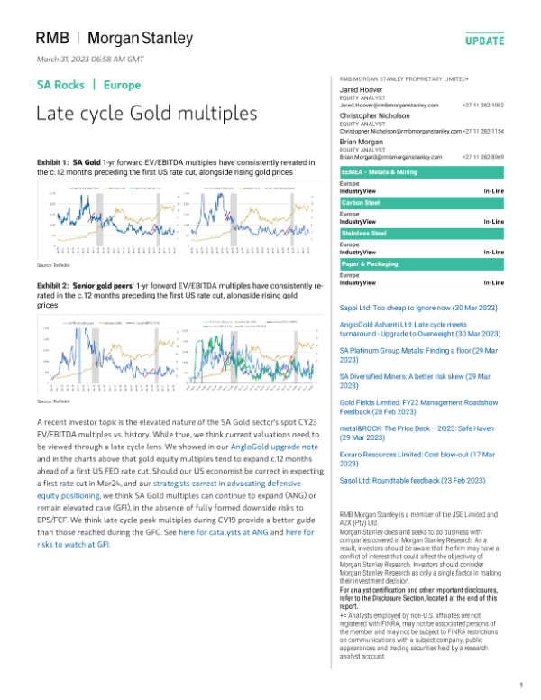 【Morgan Stanley】【20230331】SA Rocks Late cycle Gold multiples-57页 行业研究