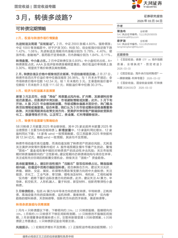 【天风证券】【202603】3月,转债多歧路-18页 证券期货研究报告