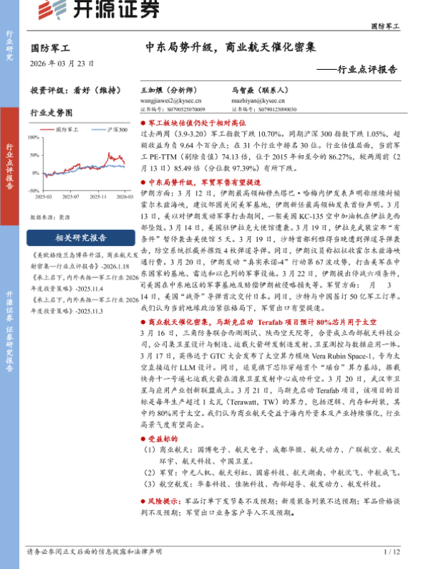 【开源证券】【202603】中东局势升级,商业航天催化密集——行业点评报告-12页 证券期货研究报告