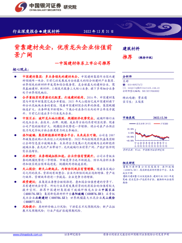 【银河证券】【20221231】深度报告-20221231-中国银河-中国建材体系上市公司推荐_背靠建材央企_优质龙头企业估值前景广阔-46页 行业研究