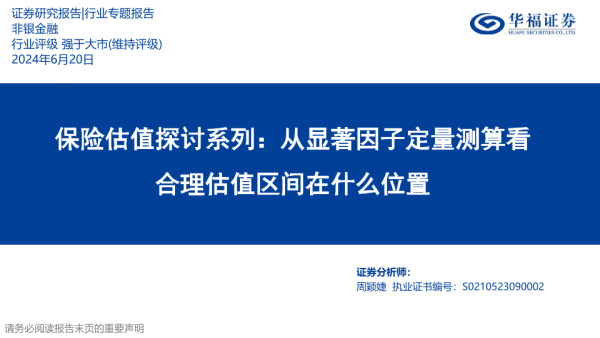 【华福证券】【20240620】保险估值探讨系列:从显著因子定量测算看合理估值区间在什么位置-29页 证券期货研究报告