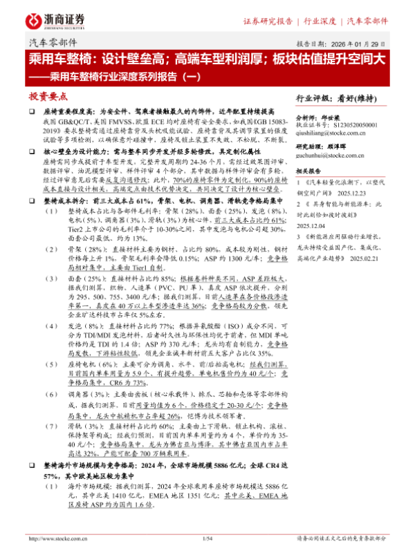 【浙商证券】【202601】乘用车整椅:设计壁垒高;高端车型利润厚;板块估值提升空间大-54页 证券期货研究报告