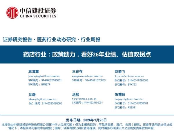 【中信建投证券】【202602】药店行业:政策助力,看好26年业绩、估值双拐点-24页 证券期货研究报告