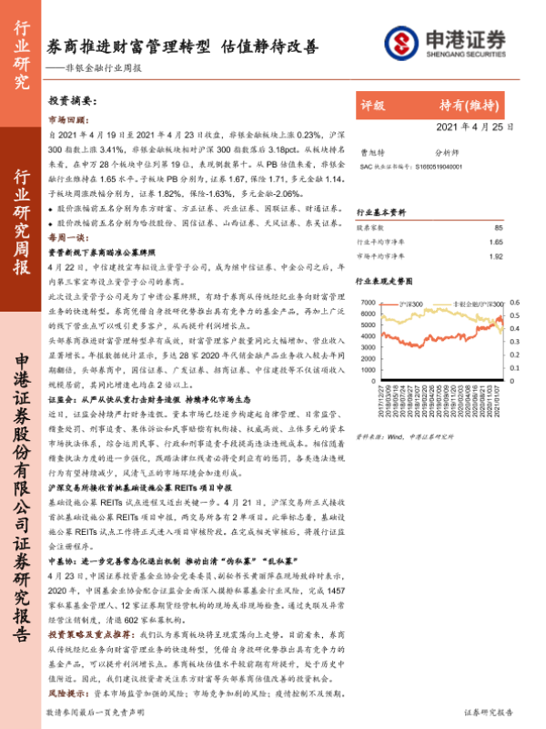 【申港证券】【20210425】非银金融行业周报:券商推进财富管理转型 估值静待改善-14页 行业研究