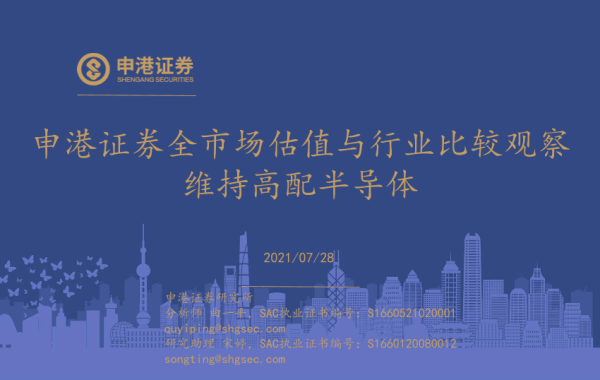 【申港证券】【20210728】全市场估值与行业比较观察:维持高配半导体-26页 行业研究