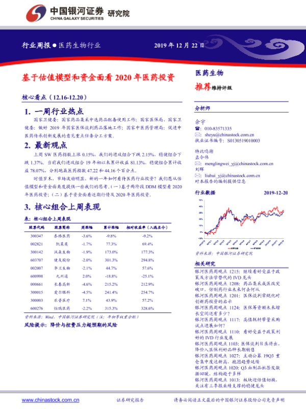 【银河证券】【20191222】基于估值模型和资金面看2020年医药投资-37页 行业研究