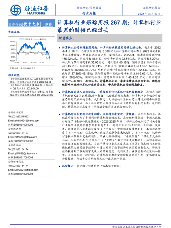【海通证券】【20220417】20220417-海通证券-计算机行业跟踪周报267期:计算机行业最差的时候已经过去-3页 行业研究