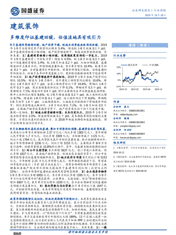 【国盛证券】【20191020】建筑装饰行业周报:多维度印证基建回暖,估值洼地具有吸引力-16页 行业研究