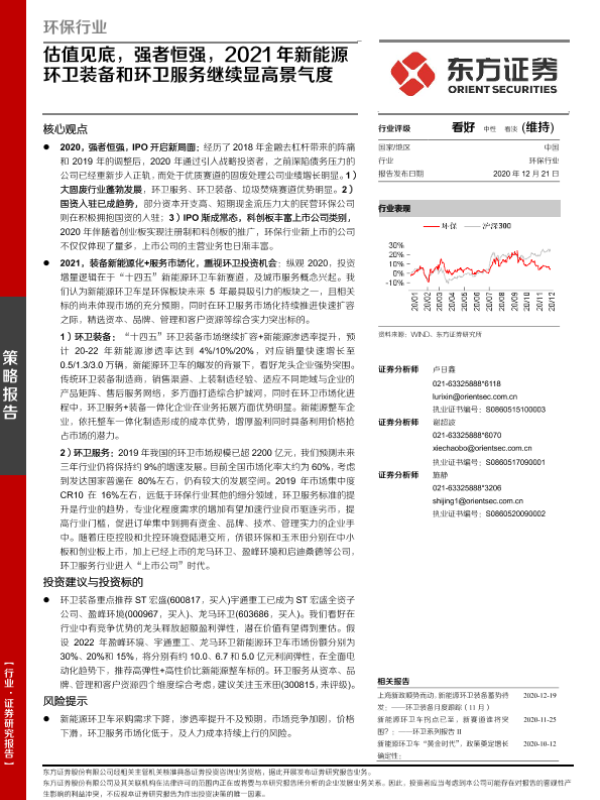 【东方证券】【20201221】环保行业策略报告:估值见底,强者恒强,2021年新能源环卫装备和环卫服务继续显高景气度-33页 行业研究