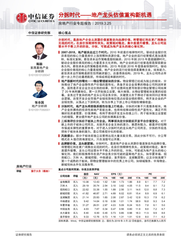 【中信证券】【20190325】分拆时代——地产龙头估值重构新机遇-22页 行业研究