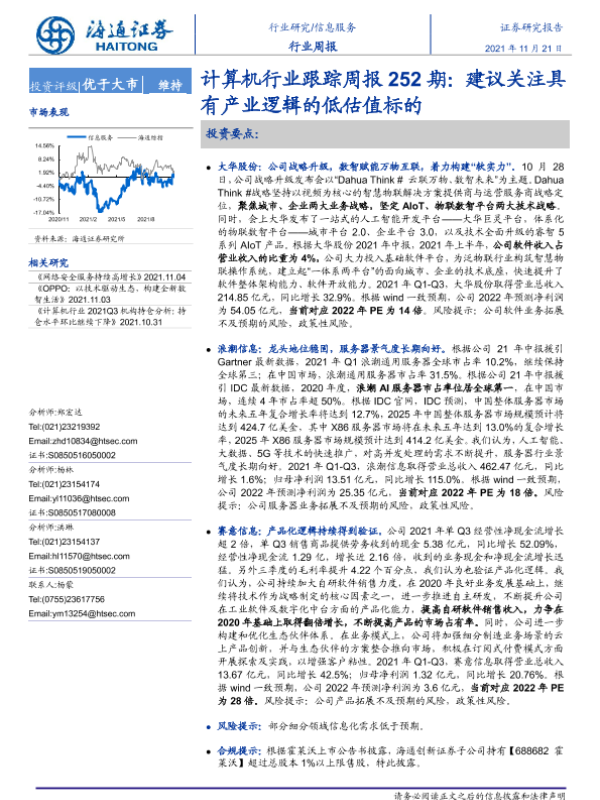 【海通证券】【20211121】计算机行业跟踪周报252期:建议关注具有产业逻辑的低估值标的-5页 行业研究