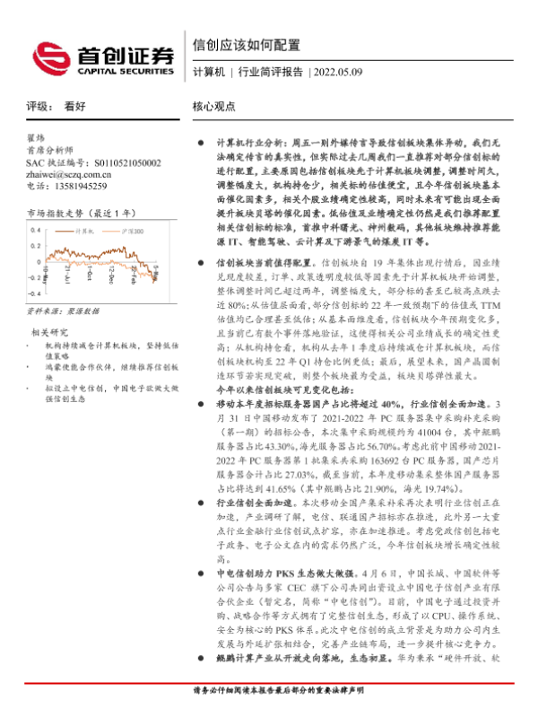 【首创证券】【20220509】计算机行业简评报告:信创应该如何配置-3页 行业研究