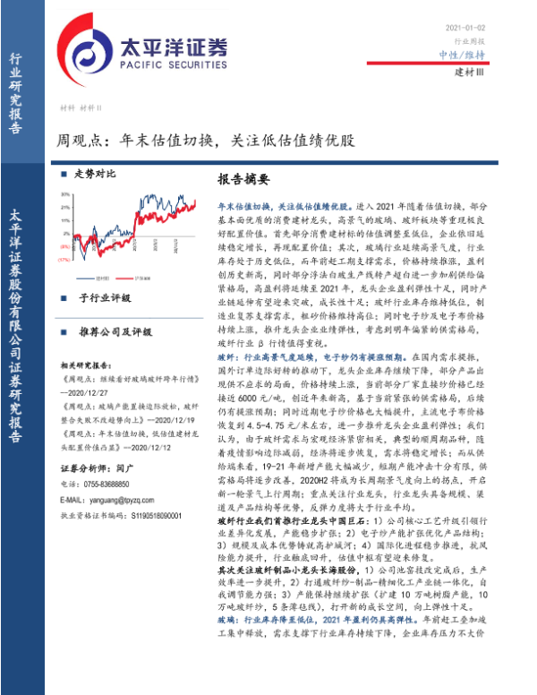 【太平洋证券】【20210102】建材Ⅲ周观点:年末估值切换,关注低估值绩优股-19页 行业研究
