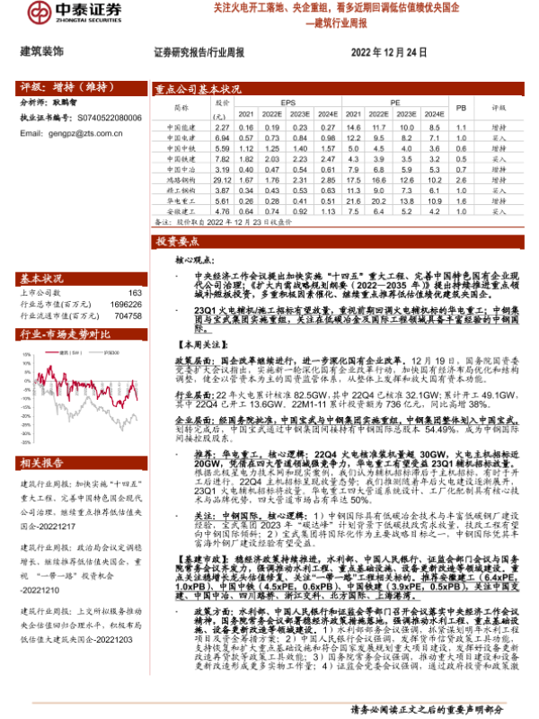 【中泰证券】【20221224】建筑行业周报:关注火电开工落地、央企重组,看多近期回调低估值绩优央国企-25页 行业研究