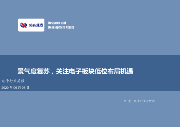 【信达证券】【20200608】20200608-信达证券-电子行业周报:景气度复苏,关注电子板块低位布局机遇-21页 行业研究