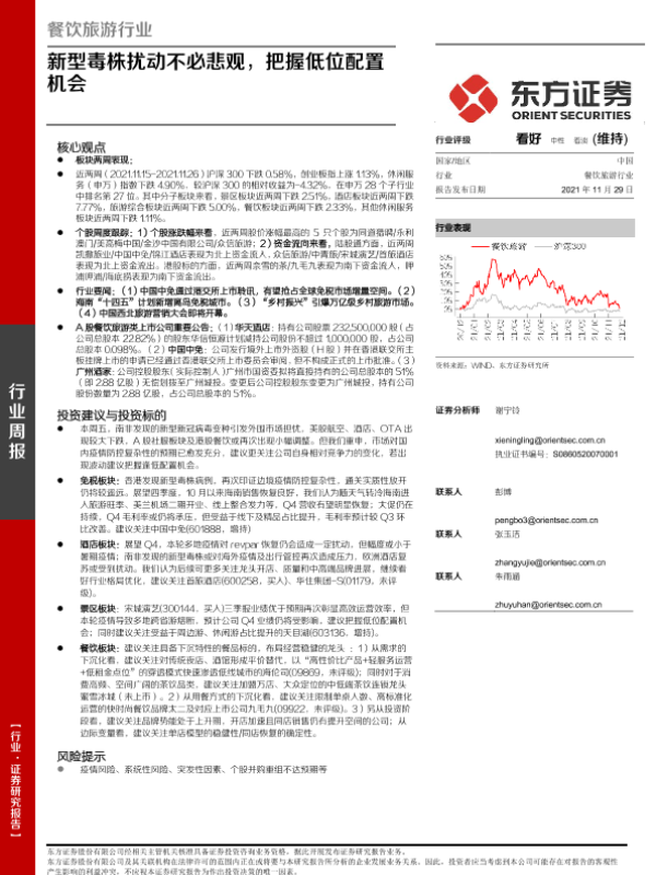 【东方证券】【20211129】餐饮旅游行业周报:新型毒株扰动不必悲观,把握低位配置机会-12页 行业研究