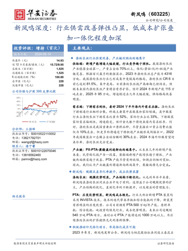 【华安证券】【20240514】新凤鸣深度:行业供需改善弹性凸显,低成本扩张叠加一体化程度加深-22页 公司研究