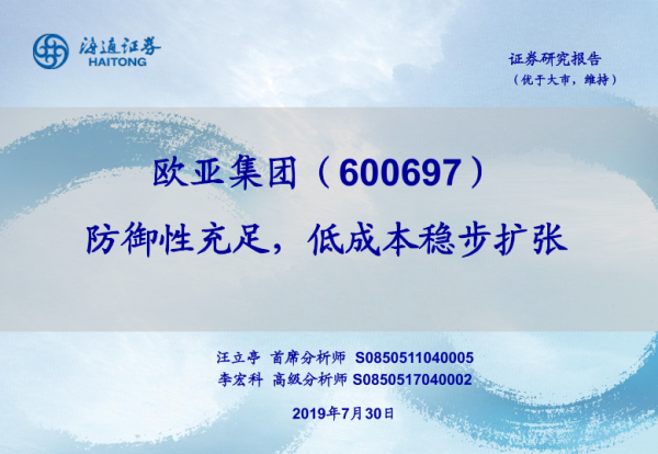 【海通证券】【20190730】欧亚集团-600697.SH-防御性充足,低成本稳步扩张-23页 行业研究