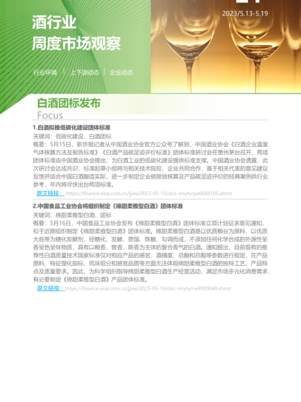 【艾瑞咨询】【20230519】2023年第21周:酒行业周度市场观察-7页 行业研究