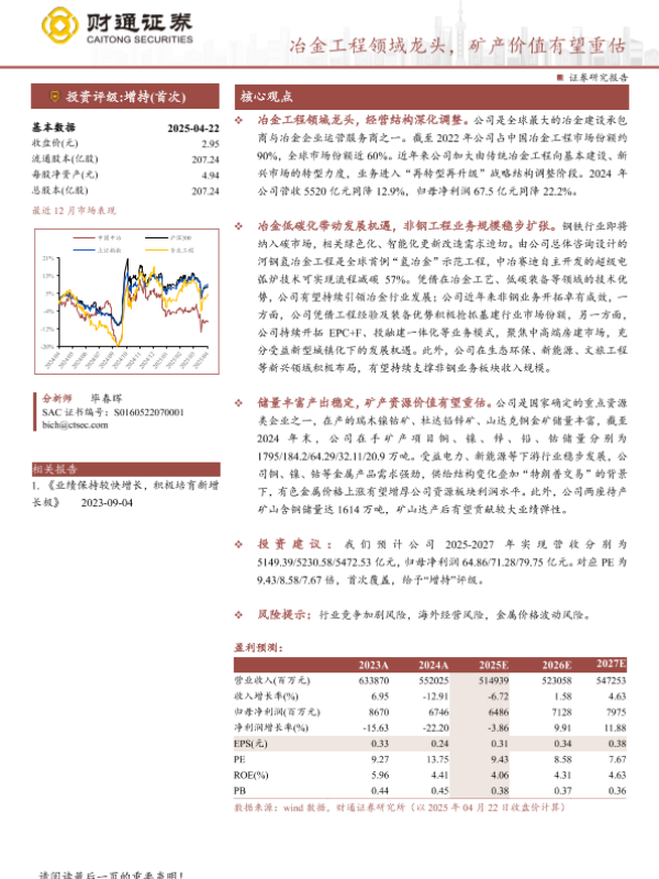【财通证券】【20250423】中国中冶(601618)冶金工程领域龙头,矿产价值有望重估-29页 证券期货研究报告