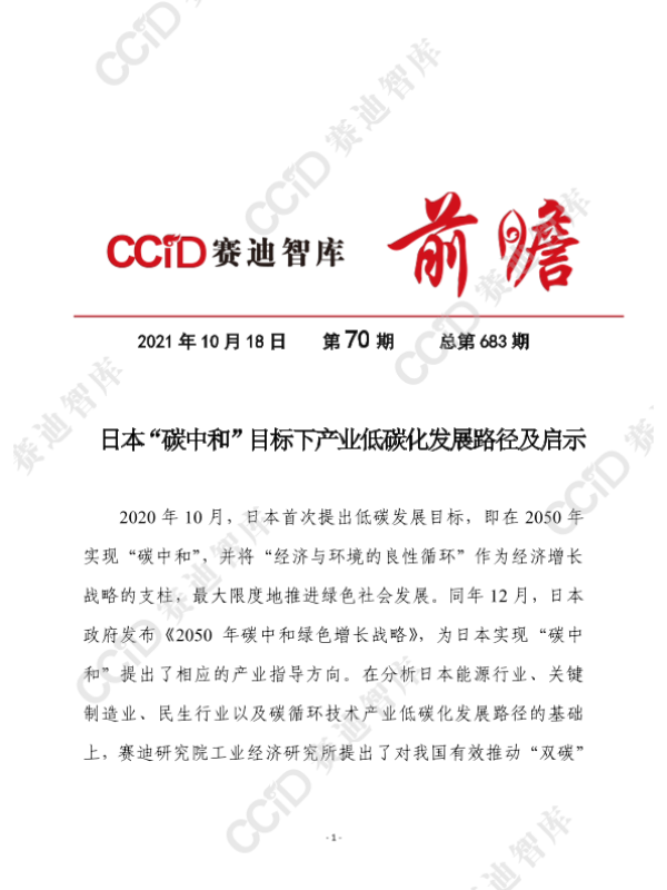 【赛迪研究院工业经济研究所】【20211018】日本“碳中和”目标下产业低碳化发展路径及启示-11页 行业研究
