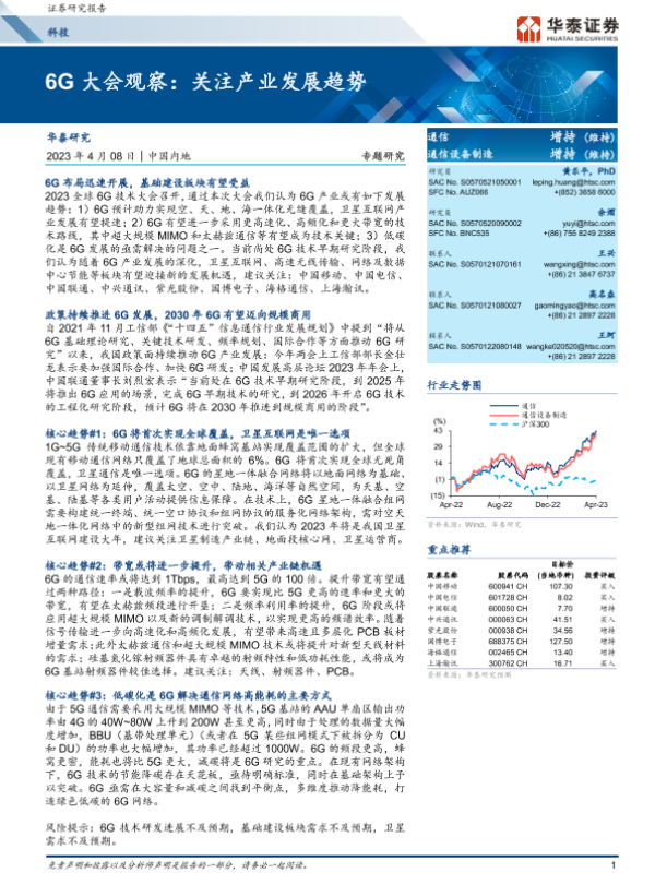 【华泰证券】【20230408】6G大会观察:关注产业发展趋势-17页 行业研究