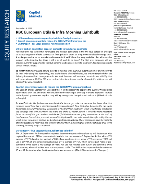 【RBC Europe Limited】【20220909】RBC European Utils & Infra Morning Lightbulb-9页 行业研究