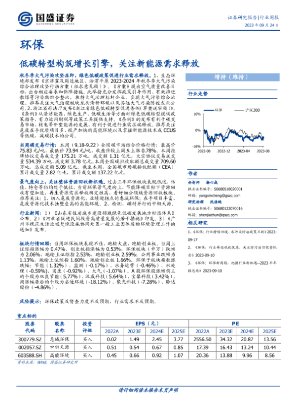 【国盛证券】【20230924】环保行业周报:低碳转型构筑增长引擎,关注新能源需求释放-11页 行业研究