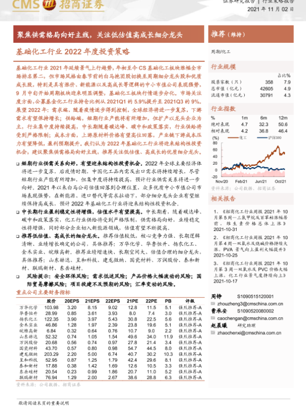 【海通证券】【20211102】基础化工行业2022年度投资策略:聚焦供需格局向好主线,关注低估值高成长细分龙头-28页 行业研究