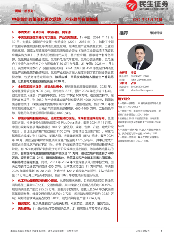 【民生证券】【20250112】中美氢能政策催化再次落地,产业趋势有望加速-18页 行业研究