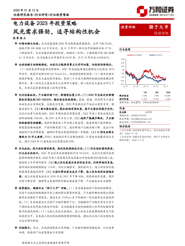 【万和证券】【20230112】电力设备2023年投资策略:风光需求强劲,追寻结构性机会-25页 行业研究