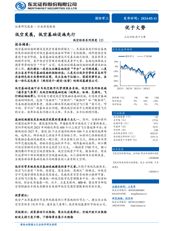 【东北证券】【20240511】国防军工行业低空经济系列深度(2):低空发展,低空基础设施先行-32页 行业研究