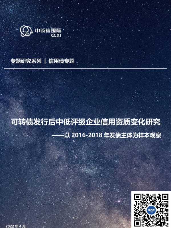 【中诚信国际】【20220415】以2016-2018年发债主体为样本观察:可转债发行后中低评级企业信用资质变化研究-24页 行业研究