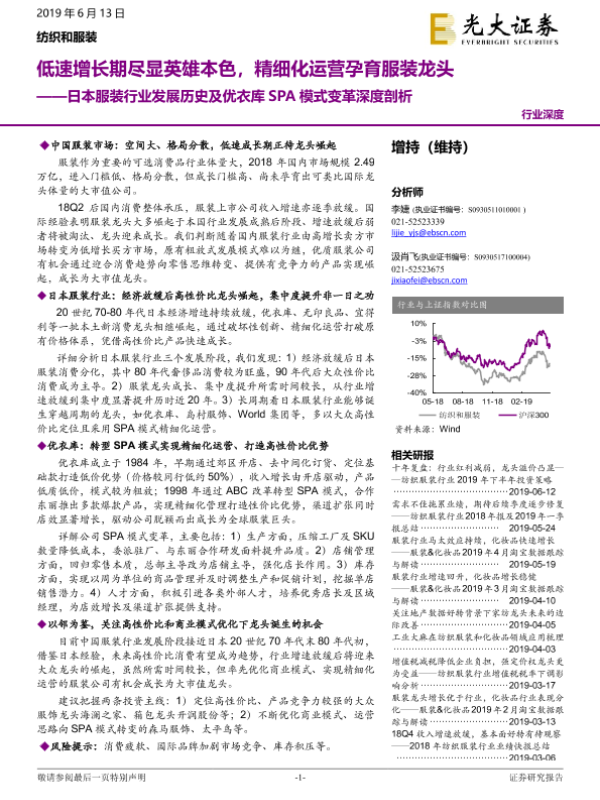 【光大证券】【20190613】日本服装行业发展历史及优衣库 SPA 模式变革深度剖析:低速增长期尽显英雄本色,精细化运营孕育服装龙头-41页 行业研究
