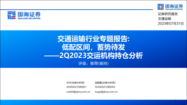【国海证券】【20230731】交通运输行业专题报告:2Q2023交运机构持仓分析,低配区间,蓄势待发-22页 行业研究
