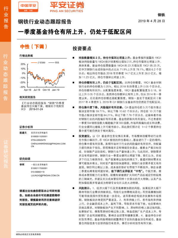 【平安证券】【20190428】20190428-平安证券-钢铁行业动态跟踪报告:一季度基金持仓有所上升,仍处于低配区间-8页 行业研究