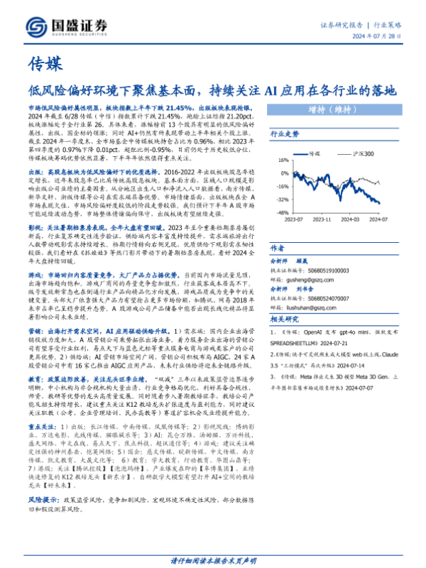 【国盛证券】【20240728】低风险偏好环境下聚焦基本面,持续关注AI应用在各行业的落地-50页 行业研究