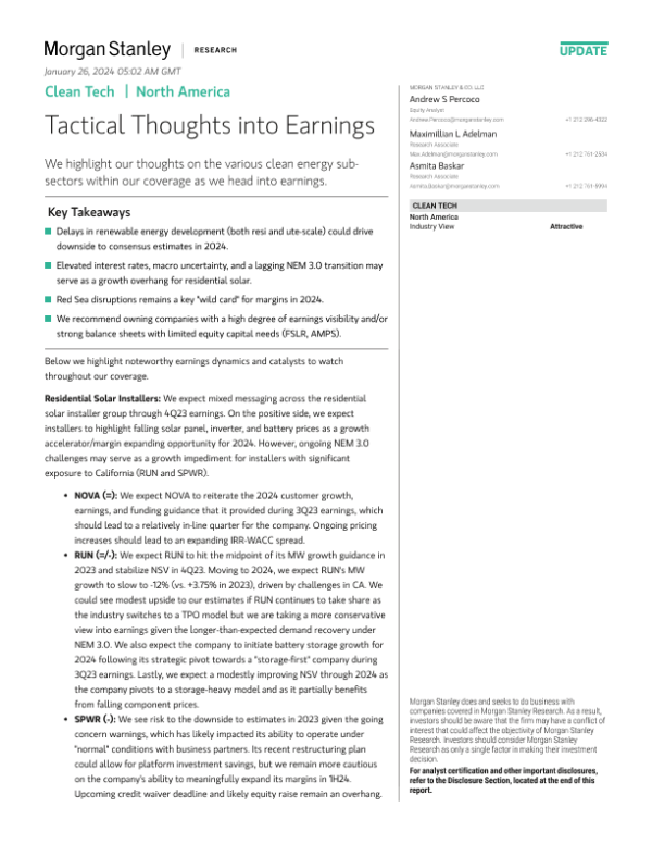 【Morgan Stanley】【2023】Clean Tech Tactical Thoughts into Earnings-21页 行业研究