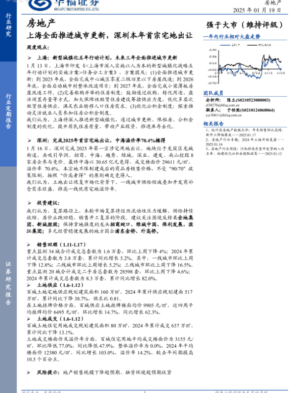 【华福证券】【20250119】上海全面推进城市更新,深圳本年首宗宅地出让-14页 行业研究