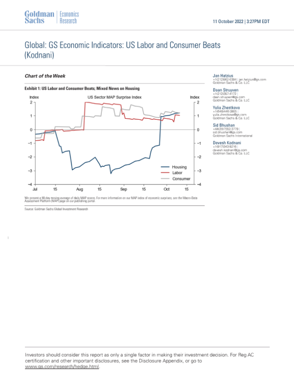 【Goldman Sachs】【20221011】Global_ GS Economic Indicators_ US Labor and Consumer Beats-27页 宏观策略