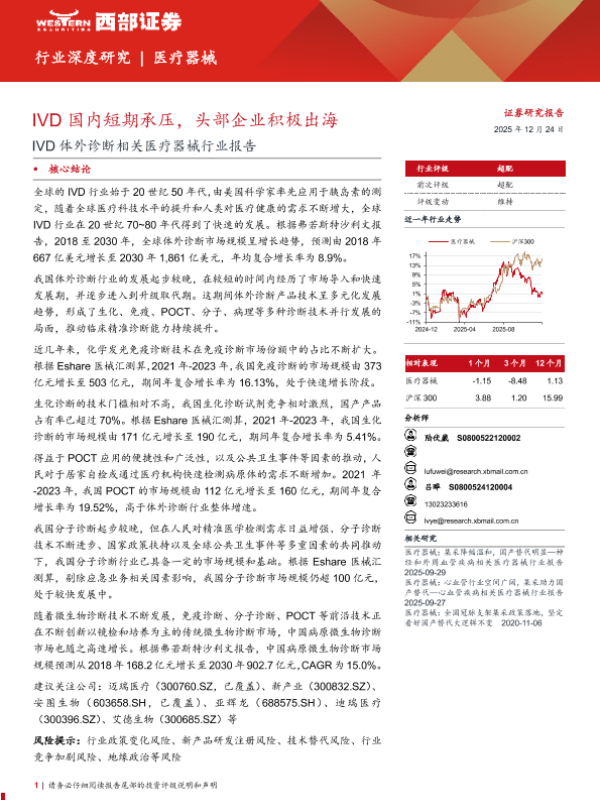 【西部证券】【202512】IVD国内短期承压,头部企业积极出海-32页 证券期货研究报告