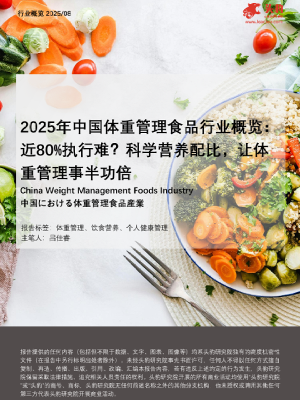 【头豹研究院】【2025】2025年体重管理食品品牌推荐:科技创新驱动行业变革,健康理念重塑消费格局-8页 市场调研