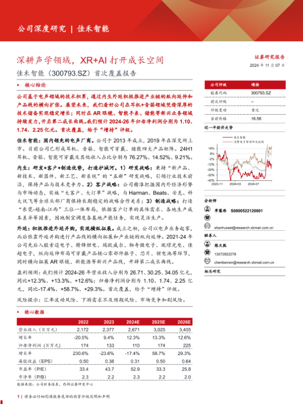 【西部证券】【20241107】佳禾智能(300793)首次覆盖报告:深耕声学领域,XR+AI打开成长空间-27页 行业研究