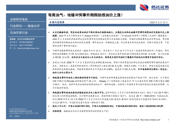 【信达证券】【20200214】每周油气:地缘冲突事件频频助推油价上涨!-5页 行业研究
