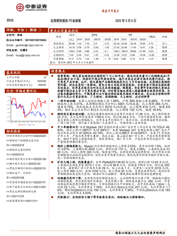 【中泰证券】【20220305】20220305-中泰证券-钢铁行业周报:供应不可抗力-11页 行业研究