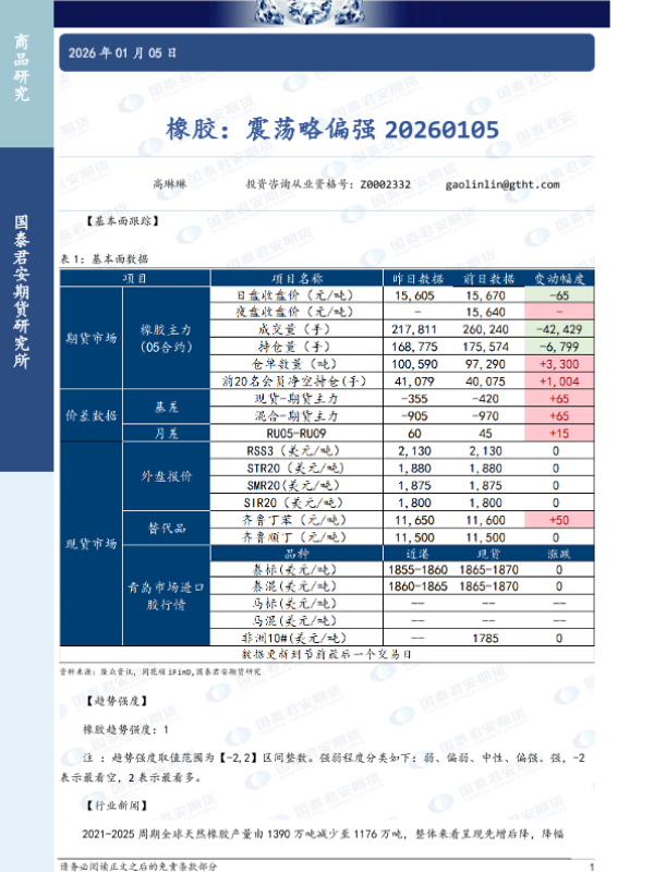 【国泰君安期货】【202601】橡胶:震荡略偏强-3页 证券期货研究报告