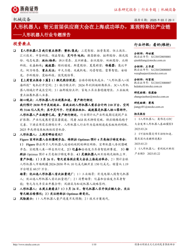 【浙商证券】【20250329】人形机器人:智元首届供应商大会在上海成功举办,重视特斯拉产业链-10页 行业研究