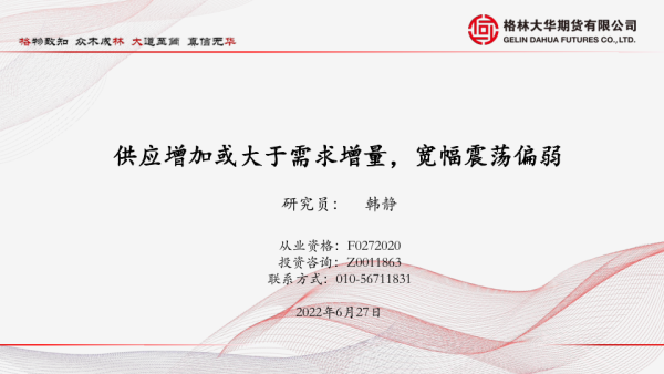 【格林大华期货】【20220627】供应增加或大于需求增量,宽幅震荡偏弱-20页 行业研究