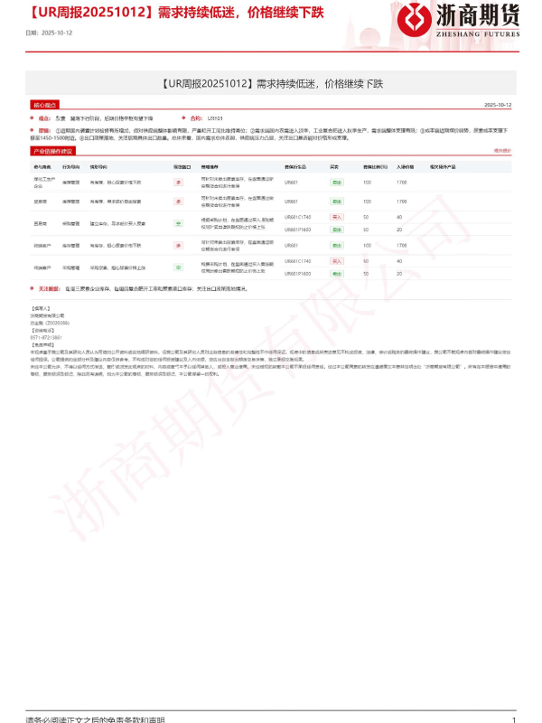 【浙商期货】【202510】UR周报 20251012-14页 证券期货研究报告